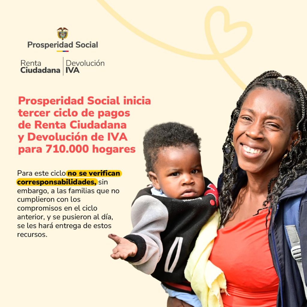 ?#EsNoticia | ?#ProsperidadSocial inicia tercer ciclo de pagos de Renta Ciudadana y Devolución de IVA para 710.000 hogares. ??