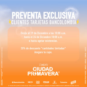 El exitoso show 'Ciudad Primavera' que logró convertirse en gira ya tiene boletas en preventa con Bancolombia.