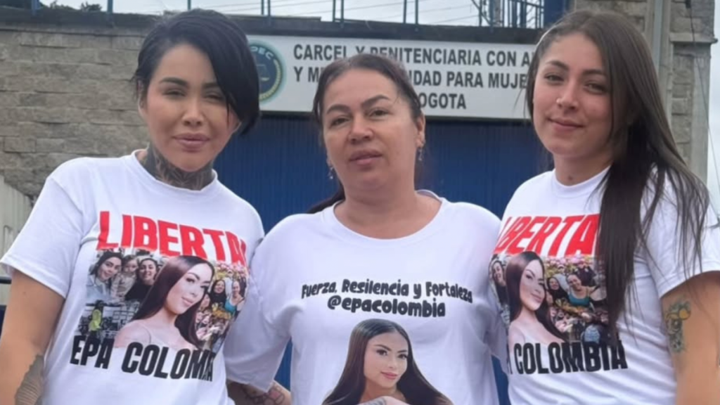 A pesar de que no ha podido visitar a su amiga, Yina Calderón se presentó a las afueras de la cárcel para apoyarla. En una imagen que circula en redes sociales se observa que Calderón estuvo un rato a las afueras del centro penitenciario vistiendo una camiseta con el mensaje “Libertad para Epa Colombia”. En la foto aparece posando junto a Karoll Samantha, la pareja de Epa Colombia.