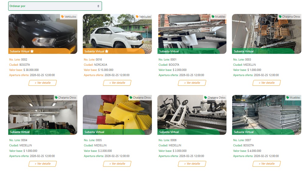 Cuando se selecciona alguno de los lotes, el sistema cargará la información de los bienes y allí podrá identificar el valor del depósito inicial para participar en la puja. Allí podrá realizar el depósito a través del botón PSE. Cuando abra la subasta de su interés, podrá realizar las ofertas para quedarse con el bien, recuerde que estos tienen un precio base. La plataforma le dará opciones de oferta que es el valor mayor ofertado más un incremento mínimo. Si su oferta es la mejor, aparecerá un letrero verde con la palabra ‘Ganando’. Si no, aparecerá la palabra ‘Perdiendo’ y podrá llevar a cabo una nueva oferta.