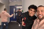 El cantante se le metió al camerino al futbolista y hasta estuvo en primera fila viéndolo jugar.
