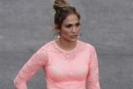 Jennifer Lopez incómoda con su vestido rosa