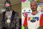 El cantante modeló luciendo un traje completamente negro estampado con pequeñas flores de muchos colores.