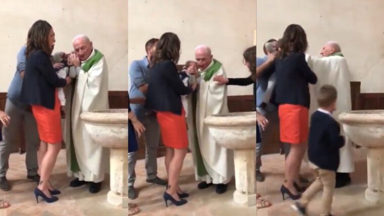 ¿Se pasó? En medio de bautizo sacerdote pierde la paciencia y golpea a un bebé